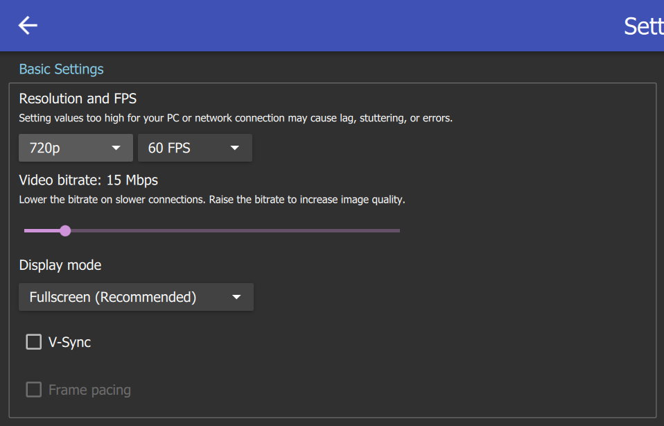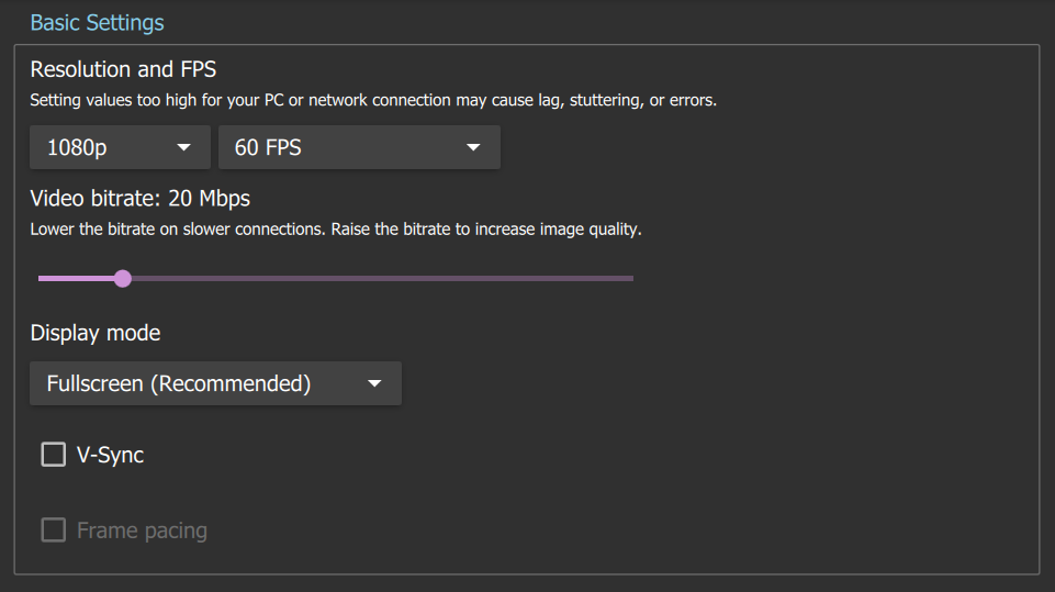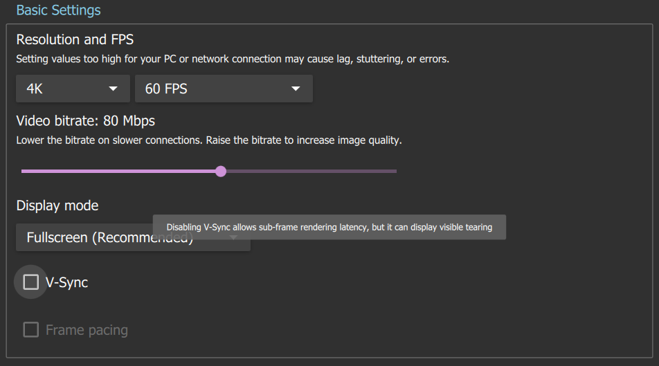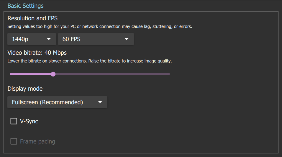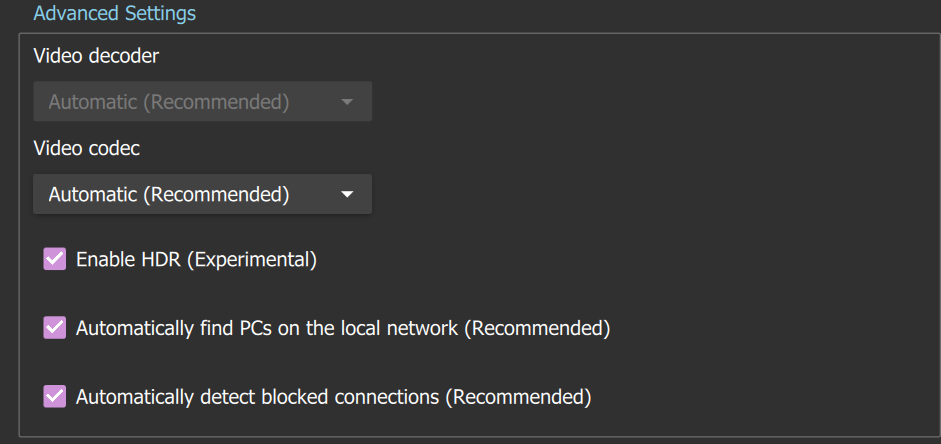 Recommended Moonlight Client Settings